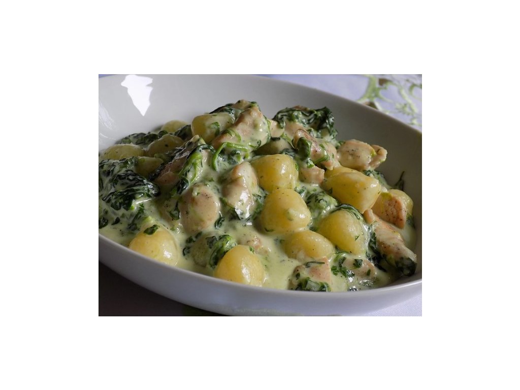 Gnocchi s kuřecím masem, špenátem a smetanou